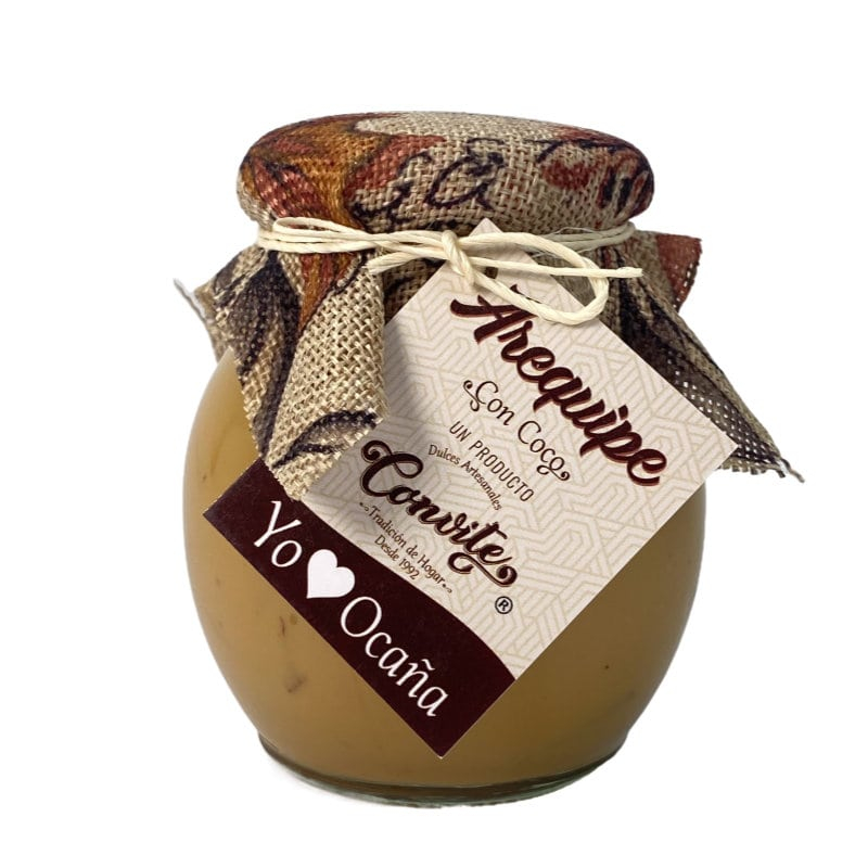 Sumérgete en el paraíso tropical con nuestro Arequipe con Coco. La cremosidad del arequipe se mezcla armoniosamente con la textura y el sabor refrescante del coco, creando una deliciosa combinación que te transportará a una playa paradisíaca.